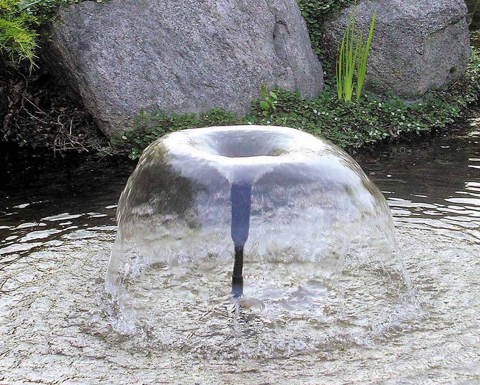 Основой выступает присутствующий на дачном участке водоем. Движение воде придает насос, благодаря которому она поступает в трубу, оборудованную насадками, формирующими форму и направление струи.