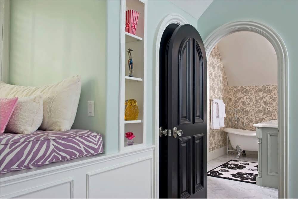 Вид дверцы, учитывающий арочные проемы делает комнату приятнее. Обычно дверки имеют полуциркульную конструкцию. Если же у дверного проема используется обрамление в готической разновидности и свод не плавно соединяет дуги, то можно установить распахивающиеся полотна прямоугольной формы. Чтобы после закрывания не оставались зазоры, над дверью дополнительно устанавливается рама. Если вам нравится классический или этнический вид, то можно монтировать двери в мавританской стилистике.