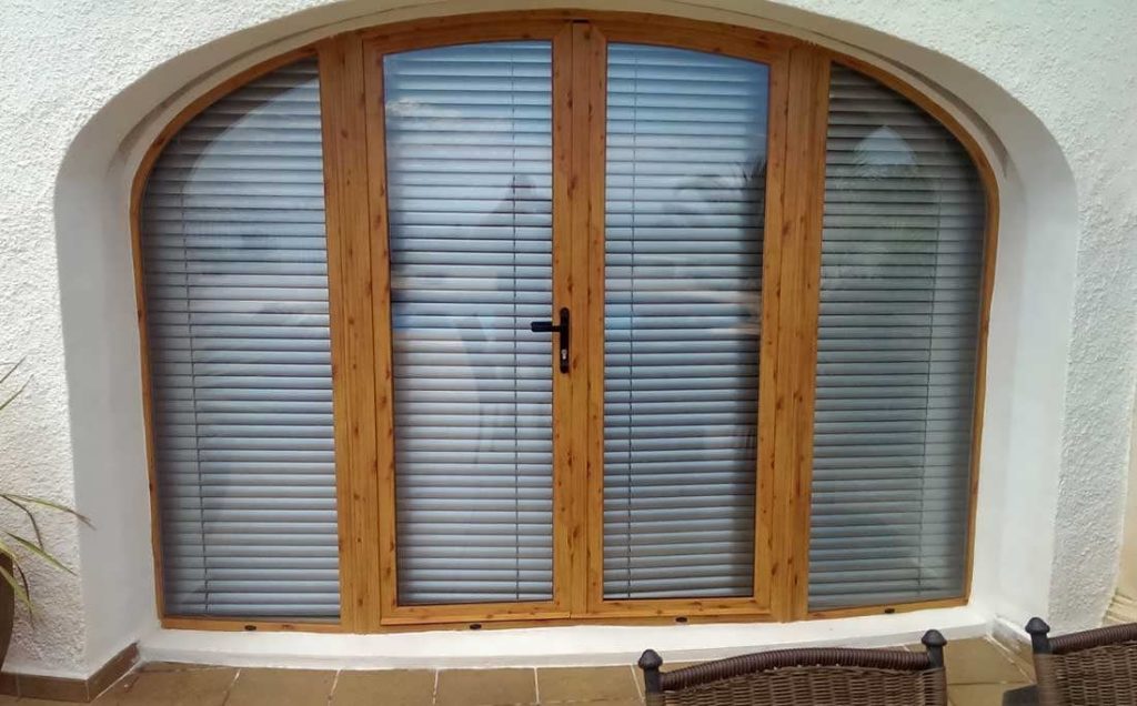 - быть стандартными с установленной неподвижной фрамугой. Такой способ экономит на заказе фигурных дверей;