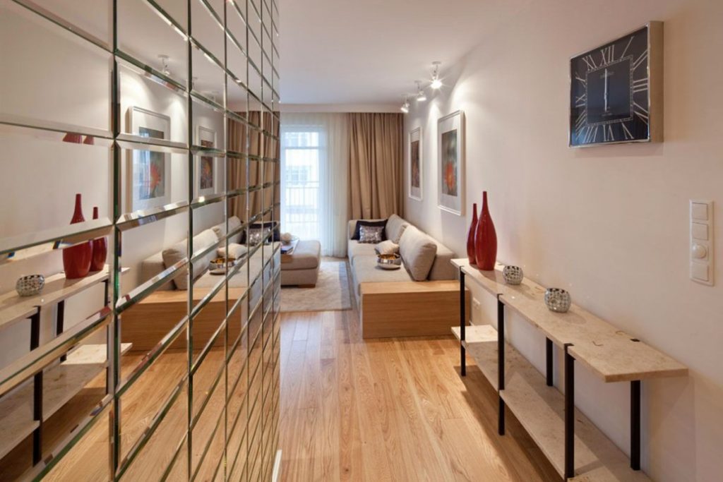 6Ставим мебель вдоль одной стены в узком коридоре.