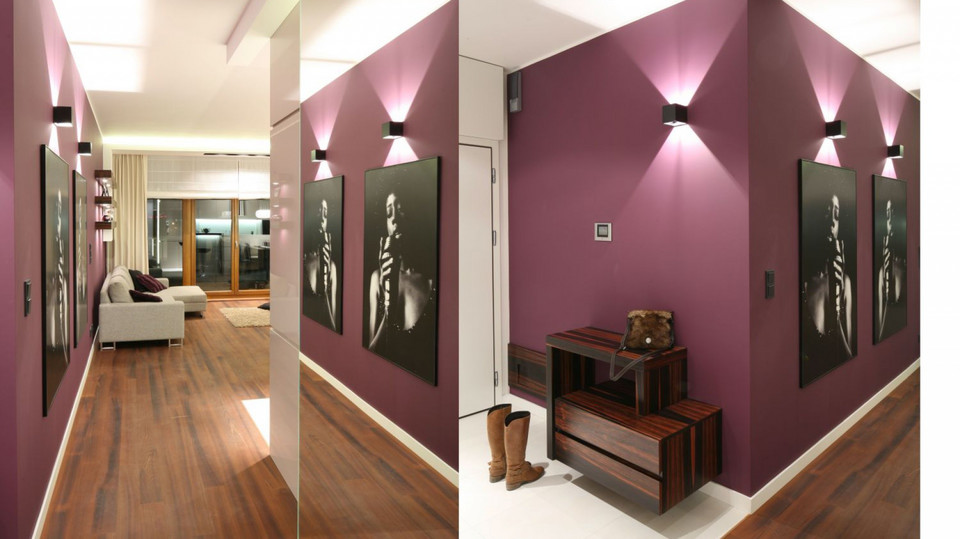 Во избежание замкнутости пространства необходимо позаботиться о придании света и элегантности помещению. Стены прихожей. Выполненной в стиле модерн, по традиции оклеивают обоями. В редких случаях используют разноцветные краски.