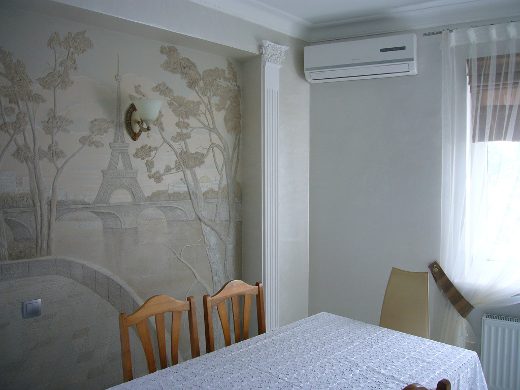 - Под покраску. Основа состоит из прочного флизелина, поверх которого нанесен рисунок. После покраски изображение превращается в 3D-картинку. Стоимость материалов под покраску – около 1100 рублей.
