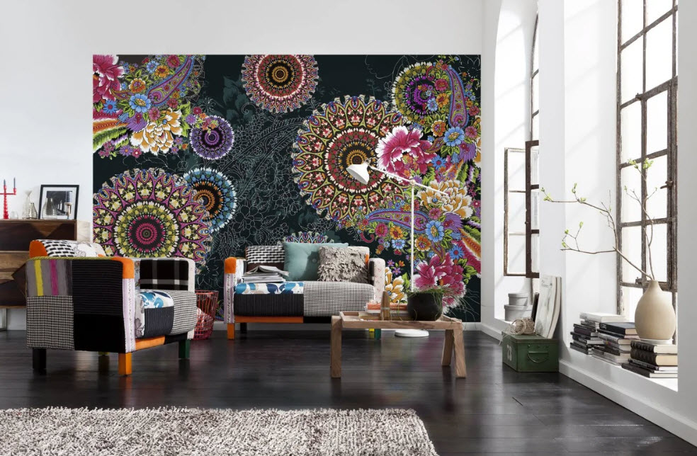 Декорации. Фотообои часто воспринимается как что-то безвкусное, но благодаря современным технологиям, возможно распечатать любой рисунок, который будет отражать дух квартиры. Совсем не лишним будет украсить одну стену красивым и модным рисунком. К тому же, не придется придумывать цветовую гамму и дизайн для остальной части помещения. Достаточно подстроиться под фотообои;
