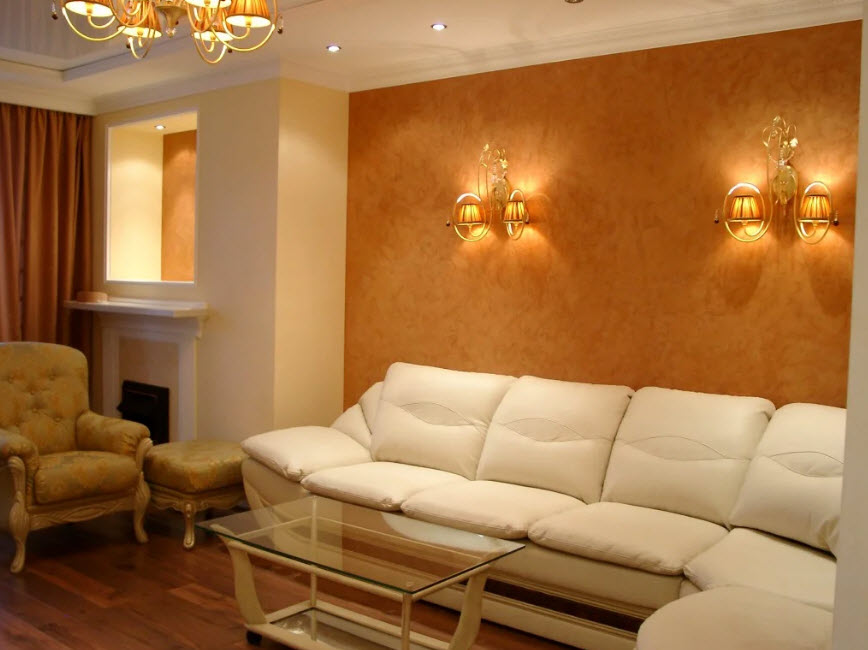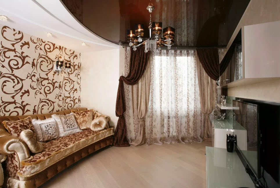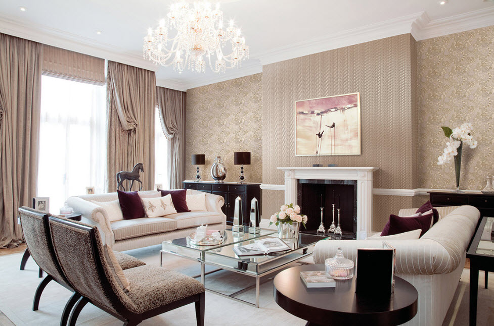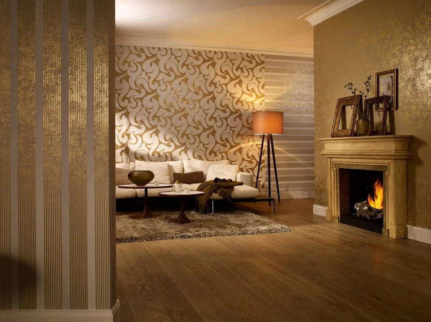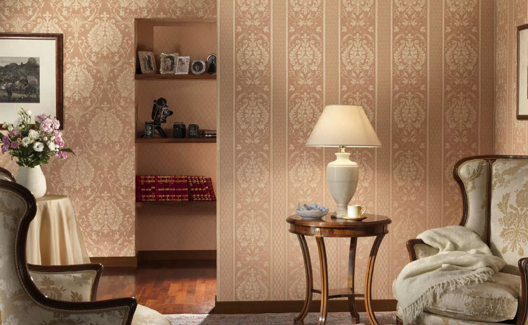 - Классический стиль – текстильные обои из шелка (светло-коричневые, бежевые или золотистые).