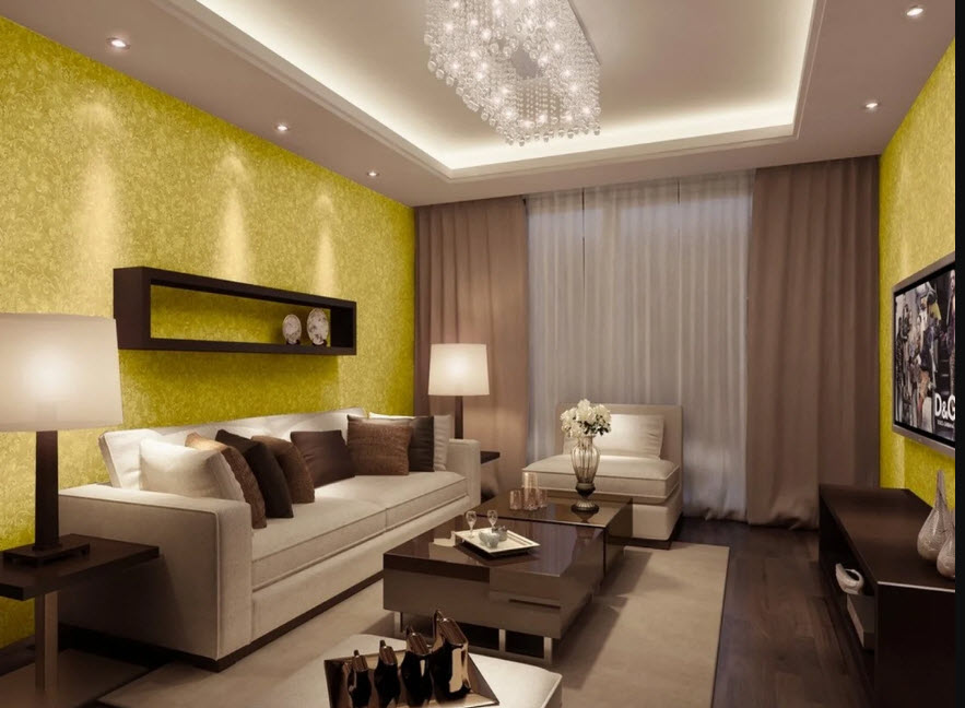Лучше всего смотрятся в гостиной фотографические изображения роз нежных оттенков: белых, розовых, желтых или пастельно-оранжевых. Очень оригинален оттенок «пыльная роза». Даже самый крошечный и недостаточно освещенный зал с простеньким гостиным гарнитуром покажется светлее и просторнее. Пусть это будет один, роскошно распустившийся цветок или множество мелких бутонов. Яркие желтые сполохи создают впечатление нарядности и праздничности, поднимают настроение.