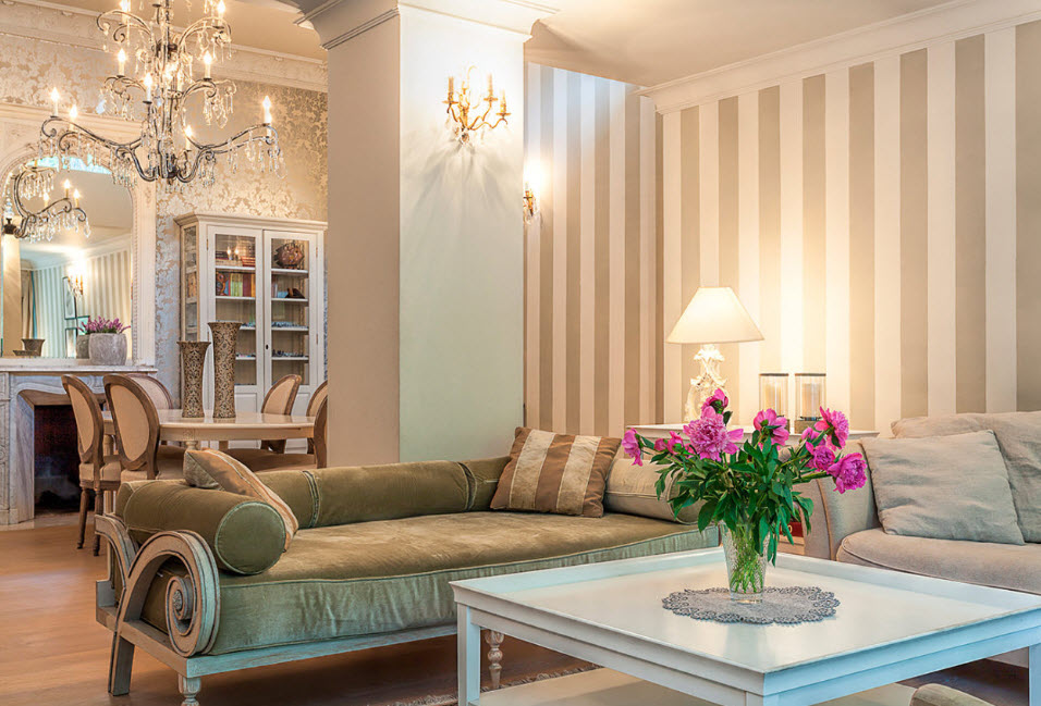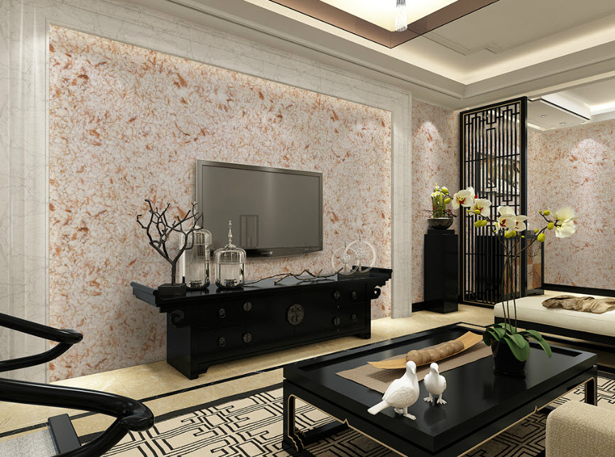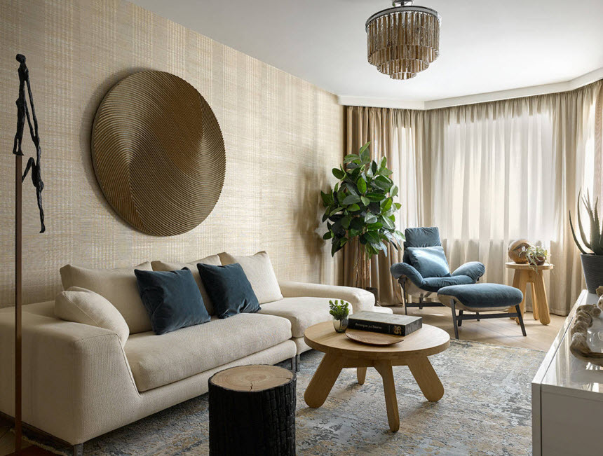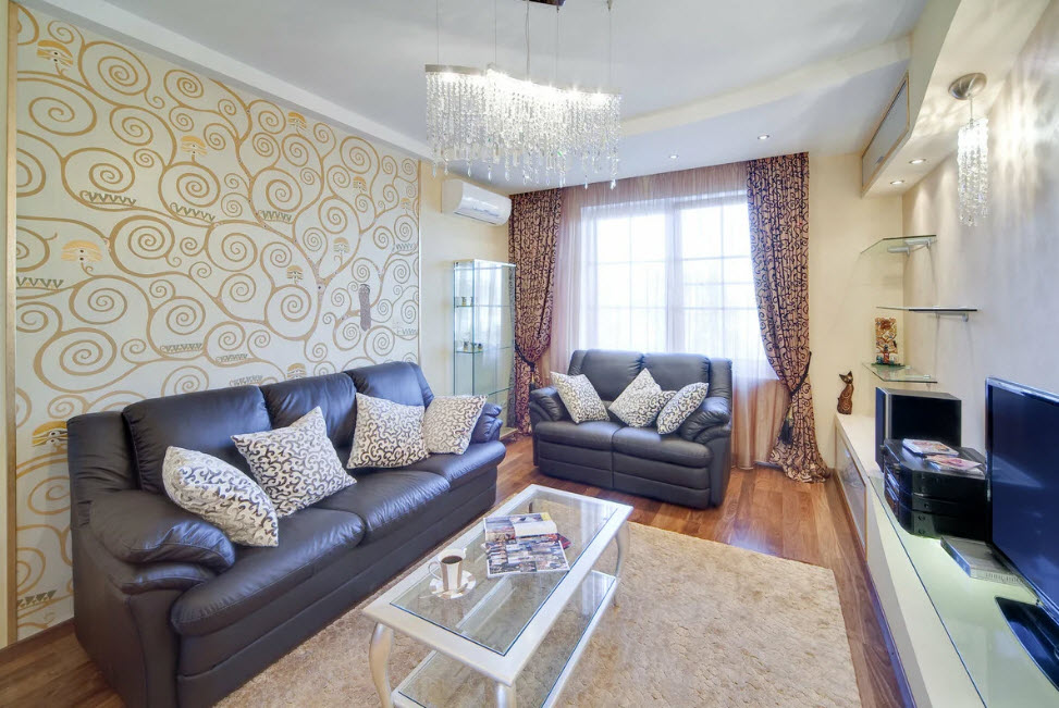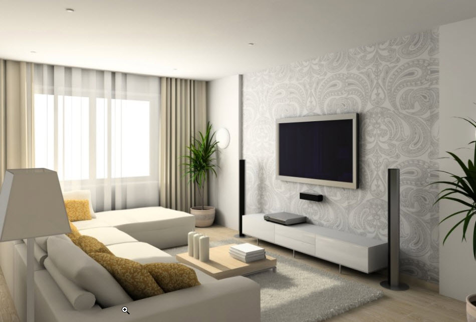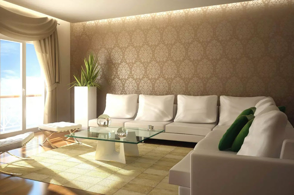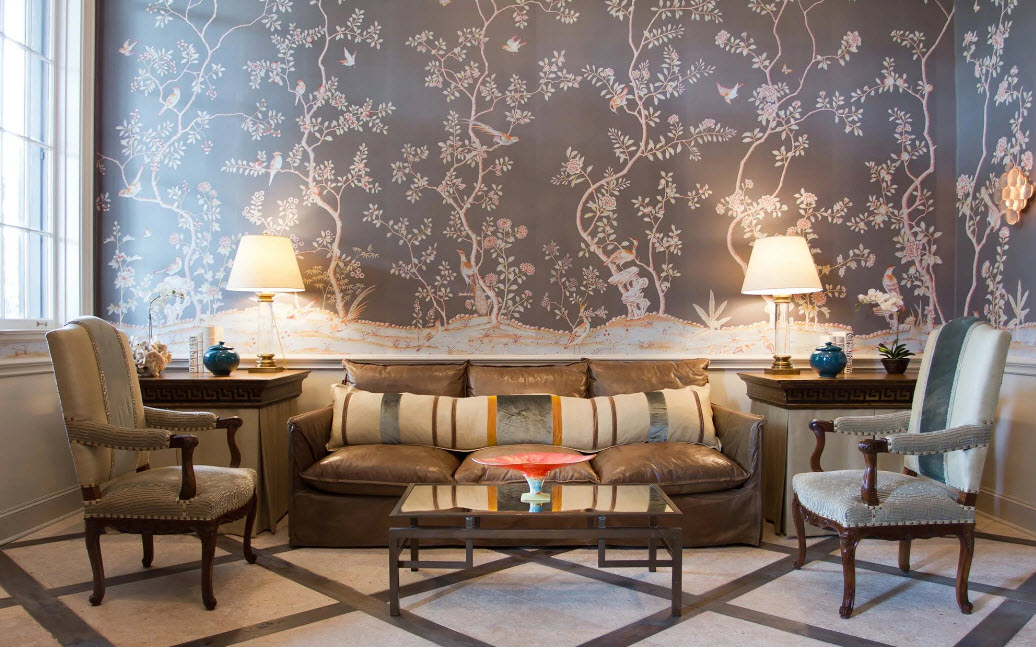 Мотивы растений подходят практически к каждой комнате, они очень универсальны. В маленькой гостиной вы будете в восторге от тонких рисунков в светлых расцветках, таких как нежно-голубой или бежевый. Если вы боитесь, что подобная отделка станет доминирующим элементом дизайна интерьера, хорошим решением будет использовать ее только на одной из стен.