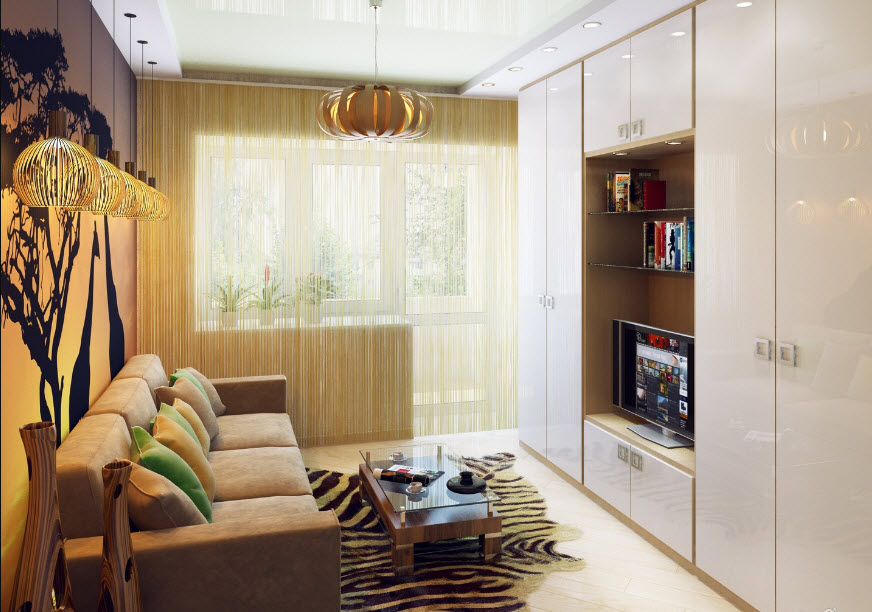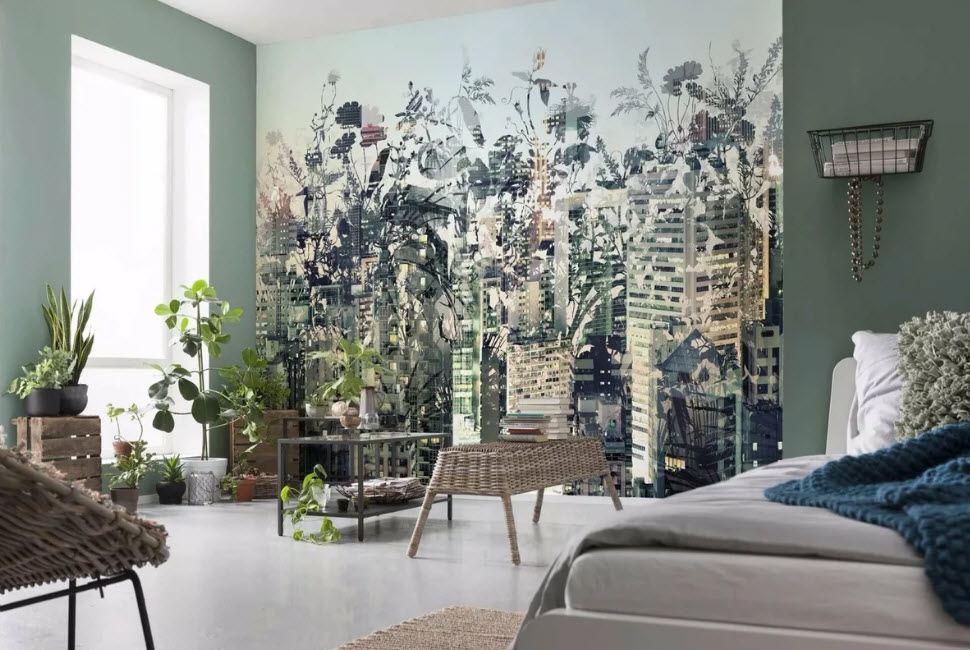 Расширение пространства. Результат может быть достигнут, если поиграть с глубиной изображения. Например, пространство станет шире, если на одну из стен повестить фотообои с мелким рисунком, видом на город или с террасы. Дизайн комнаты с фотообоями будет зависеть от ее масштабов и предварительного изображения;