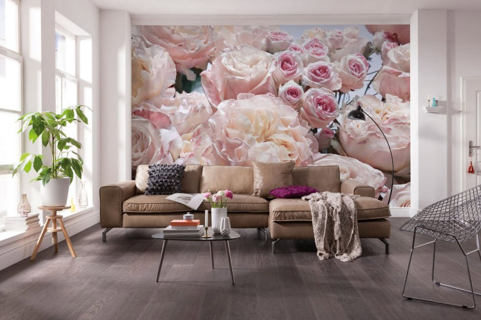 Чтобы не испортить впечатление от подарка, желательно заранее выяснить, какие фотообои и цветы в интерьере понравятся близкому человеку, присмотреться к общей гамме его комнат. Каталоги предлагают множество вариантов интерьера с использованием фотоакцента, и подбор не доставит сложностей.
