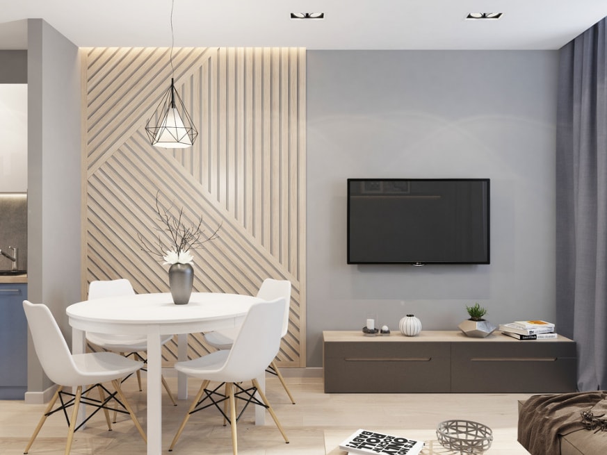 - Перепланировка позволит сэкономить на приобретении второго телевизора, вы можете купить один большой вместо двух маленьких. Также вам будет проще присматривать за малышами, играющими в гостиной, а вы в это время можете заниматься своими делами на кухне.