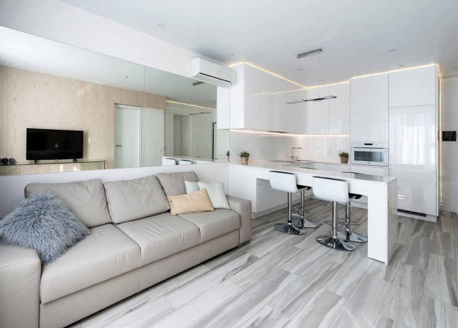 Сегодня все больше владельцев 2-х, 3-х комнатных квартир предпочитают совмещать кухню с гостиной. Это позволяет зрительно увеличить пространство помещения и сделать его более эксклюзивным и функциональным.