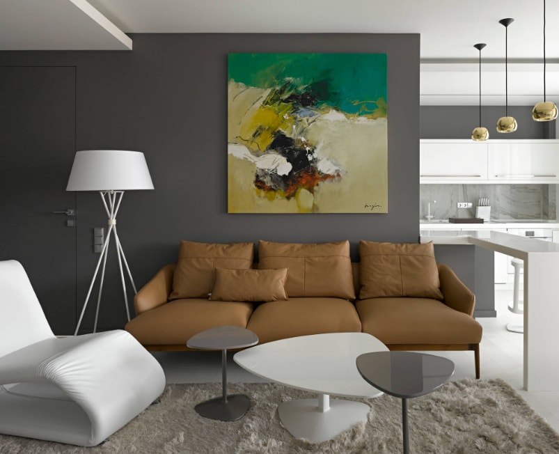 Большое количество декоративных элементов могут создать самый настоящий «ералаш» в помещении, отвлекая от его достоинств. Поэтому расставляй акценты аккуратно! Яркая ваза с цветами, разноцветные диванные подушечки, парочка картин, постеров или фото – этого вполне достаточно, чтобы разрядить скучающую обстановку, оживить интерьер гостиной зоны.
