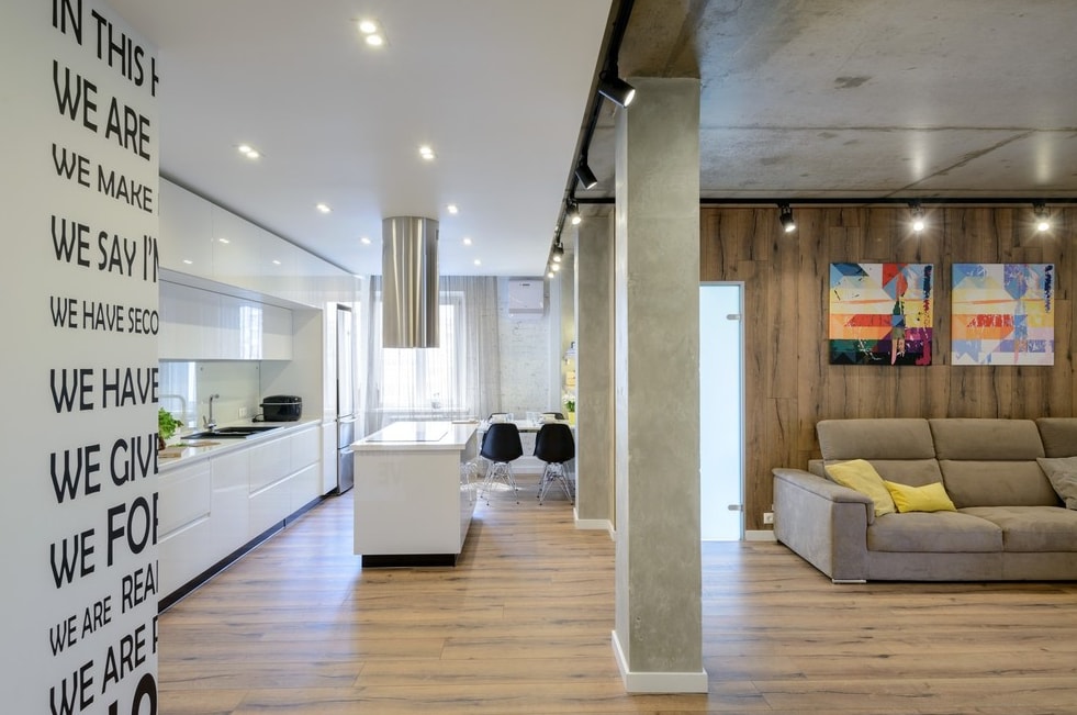 Этот уроженец Соединенных Штатов довольно быстро ассимилировался в нашем климате. Кухня-гостиная в стиле лофт – отличный выбор для творческих личностей, не стремящихся окружить себя вычурностью и роскошью.