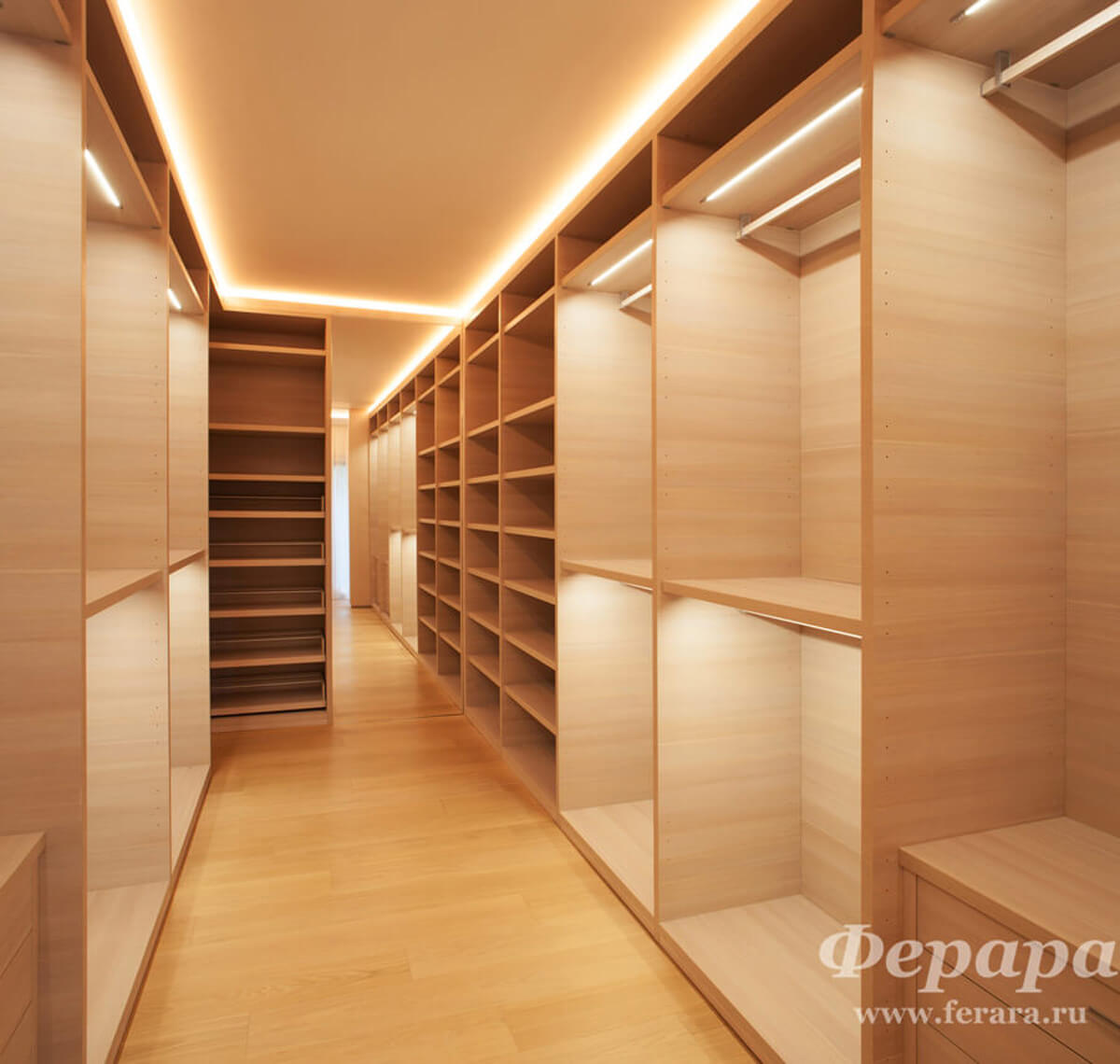 На фото: гардеробная с подсветкой. Цена за погонный метр: от 7 368 руб.