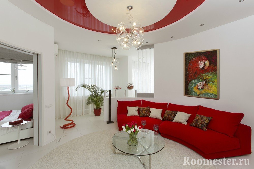 Если в таком двухцветном интерьере оставить за красным цветом – стены, это потребует от белого:
