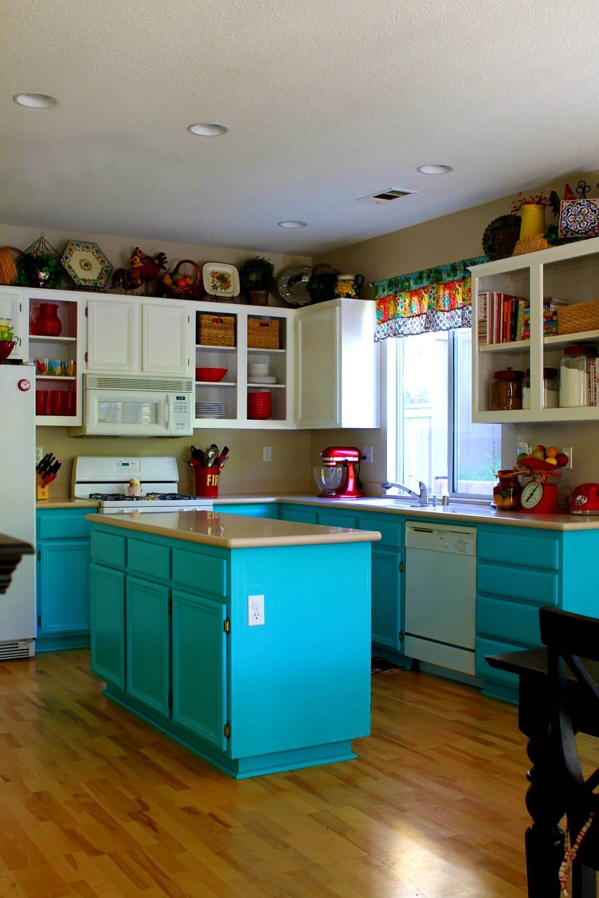 Особой популярностью пользуется лазурный оттенок, так как он зрительно расширяет даже небольшую кухню.
