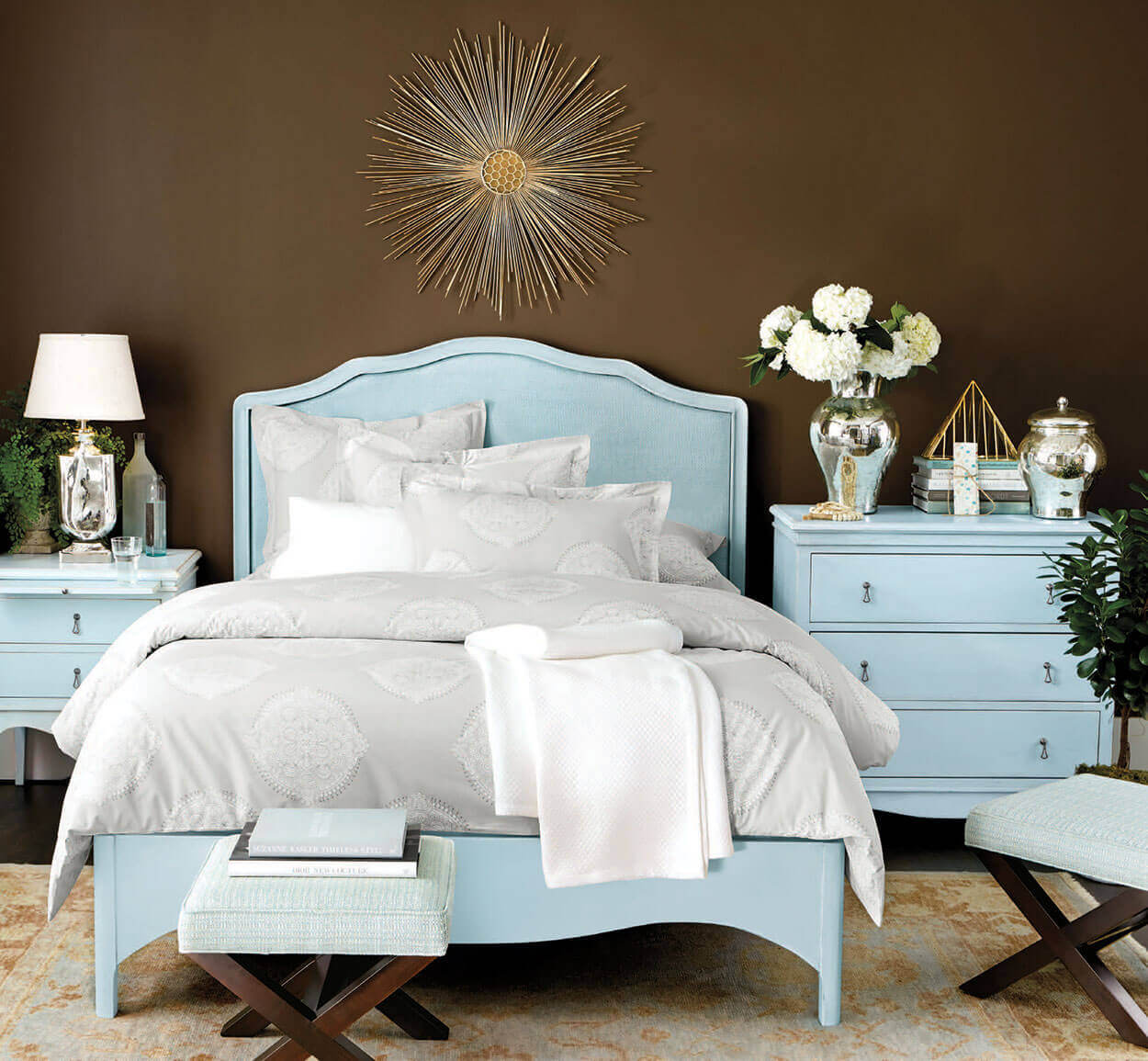 Голубой отлично гармонирует со всеми оттенками коричневого