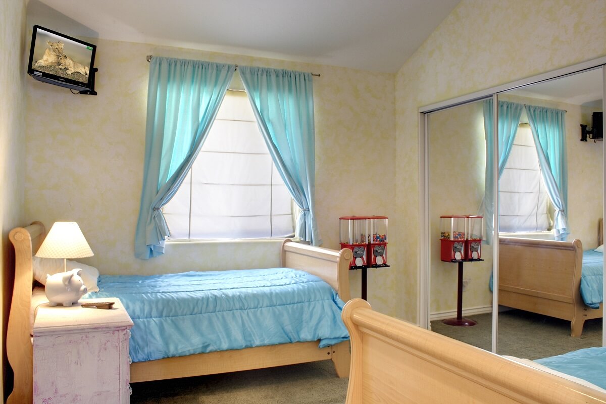 Особое внимание на декорирование комнаты — эти птички просто замечательные (стоит взять идею себе на заметку)
