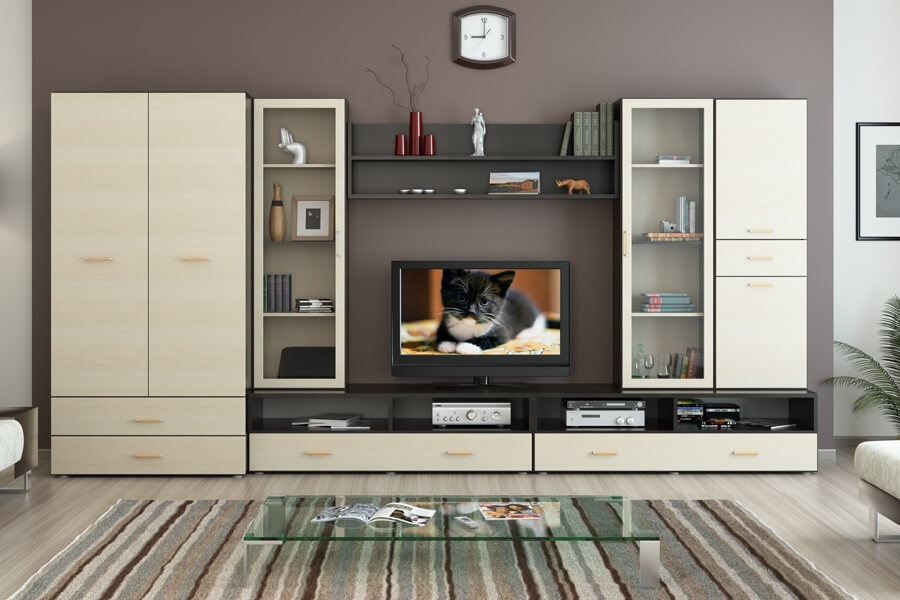 Какая мебель входит в комплект стенки для гостиной