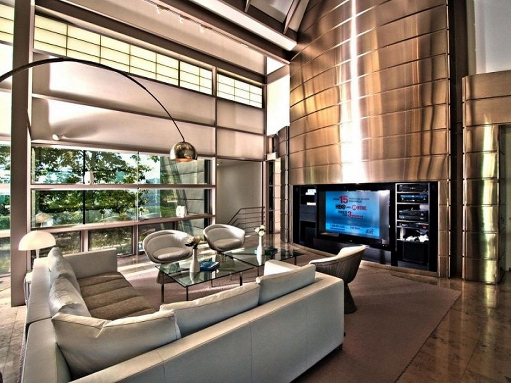 Бурное развитие информационных технологий предопределило некторое изменение акцентов при оформлении интерьера. Основное требование классического стиля хай-тек – применение инновационных отделочных материалов и сложных конструкций, созданных человеком, силой его ума. Современный хай-тек, в дополнение к этому, требует чтобы дом был начинен всевозможными «умными» системами управления: климат-контролем, регулируемым освещением, системой безопасности и т.п.