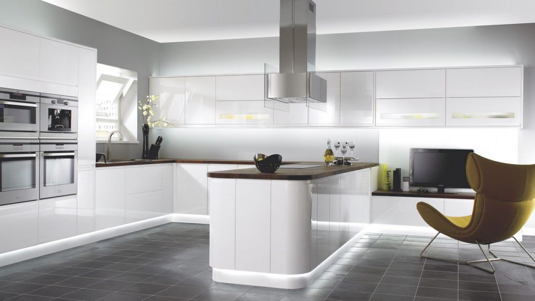 Кухонную хай-тековскую мебель отличает отменная влагостойкость, высокая степень адаптации к перепадам температуры и механическому воздействию. Интерьер в продвинутом стиле изобилует элементами, обеспечивающими повышенную функциональность пространства – полками, крючками и выдвижными ящиками для утвари. Посудомоечные и стиральные машины часто интегрированы в кухонный гарнитур.