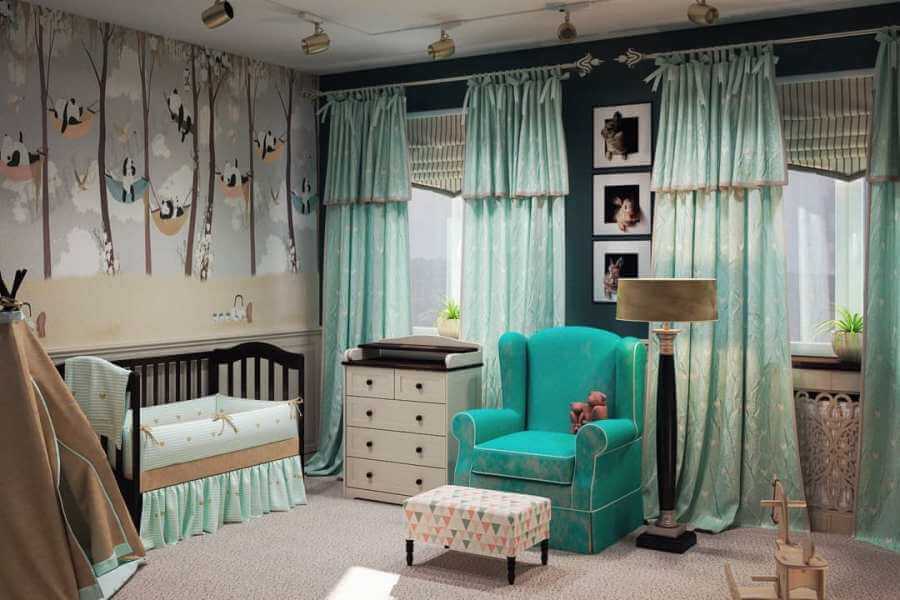 - Пастельный зеленый и голубой также подойдут для отделки стен и покраски мебели.