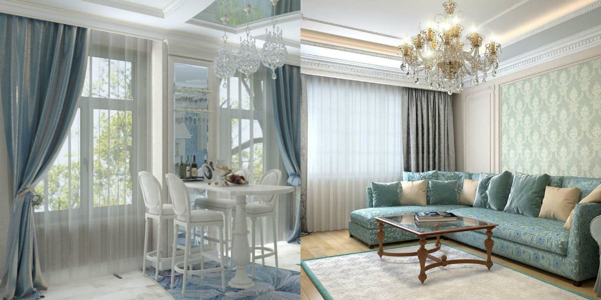 - легкие, если сравнивать с классическим стилем, не загромождающие пространство мебель и аксессуары;