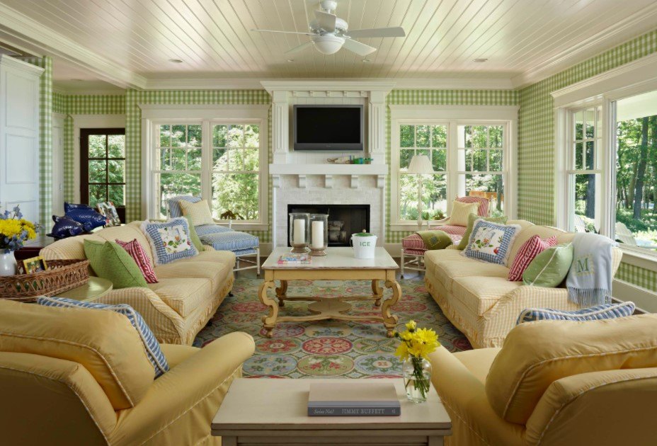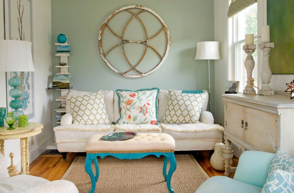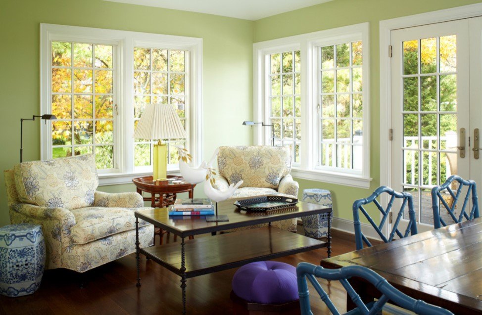 В этом стиле чаще всего используются пастельные привычные оттенки, а также в последние года стали популярными такие оттенки, как фисташковый, оливковый и васильковый. В таком стиле обязательно нужно применить в интерьере несколько ярких и контрастных цветов, которые подчеркнут светлые оттенки и придадут свои экстравагантные нотки. Такой современный стиль очень хорошо будет смотреться не только в квартире, но также и в загородном доме.