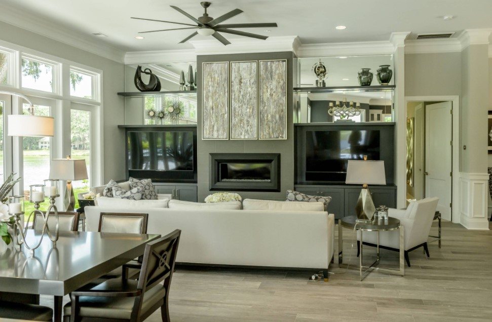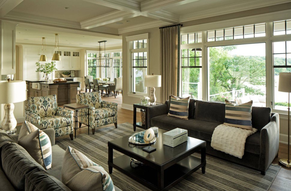 В современных интерьерах преобладают естественные цвета, то есть серый, белый и черный. Это набор из нейтральных цветов, который не бывает утомительным. Голубой в гостиной отлично смотрится в сочетании со светло-серым, но с темно-серым тоже гармонирует.