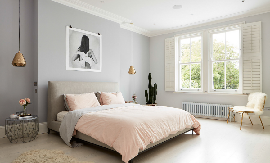 Выгоднее всего смотрится дизайн, где сочетаются пастельные тона обоих цветов. К ним можно добавлять немного светло–коричневого, светло–серого цветов. Хорошо смотрятся яркие ежевичные или аквамариновые акценты.