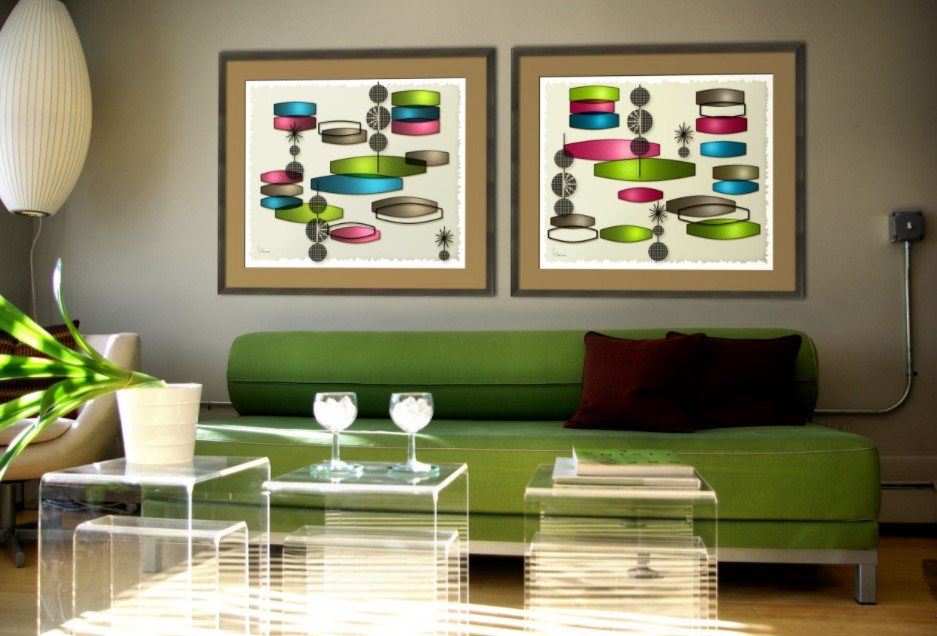 - Современные белые гостиные украшены графикой, картинами и постерами.