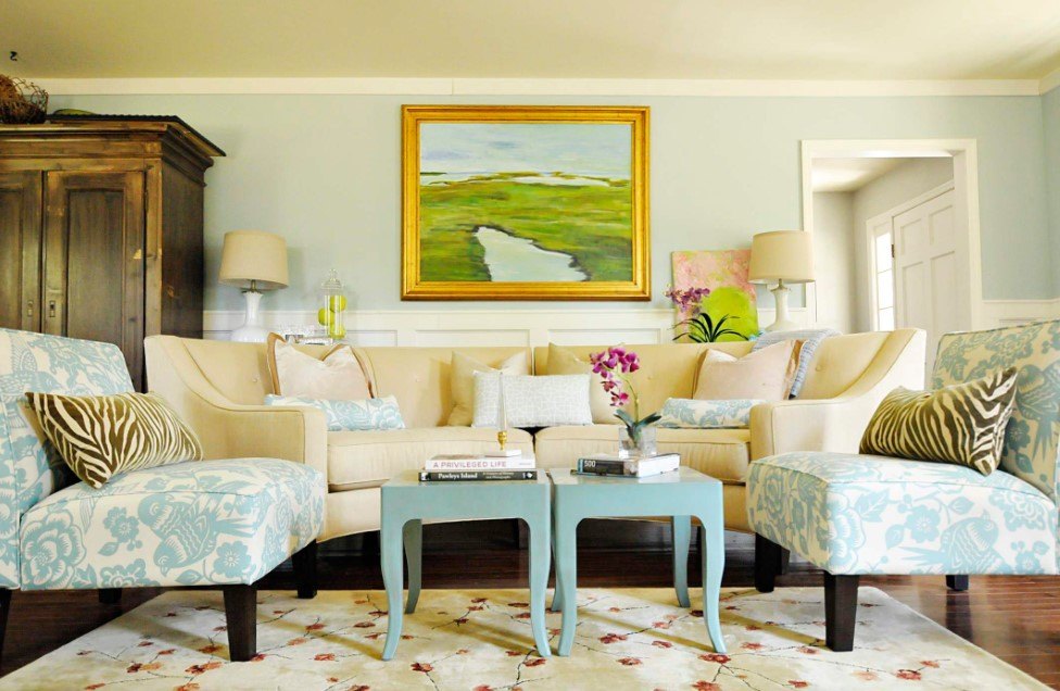 Гостиная в голубом цвете: удачные сочетания с другими расцветками