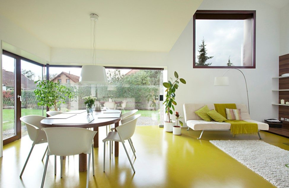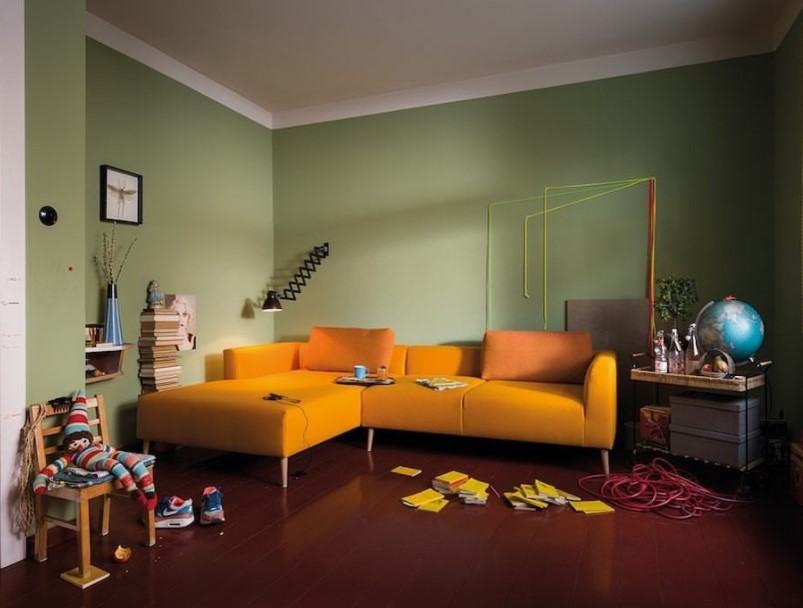 Аналогичным образом можно обыграть и зеленый цвет, который также не слишком подходит для тандема с желтым. Но, как показывает практика, в современном дизайне интерьера нет ничего невозможного.