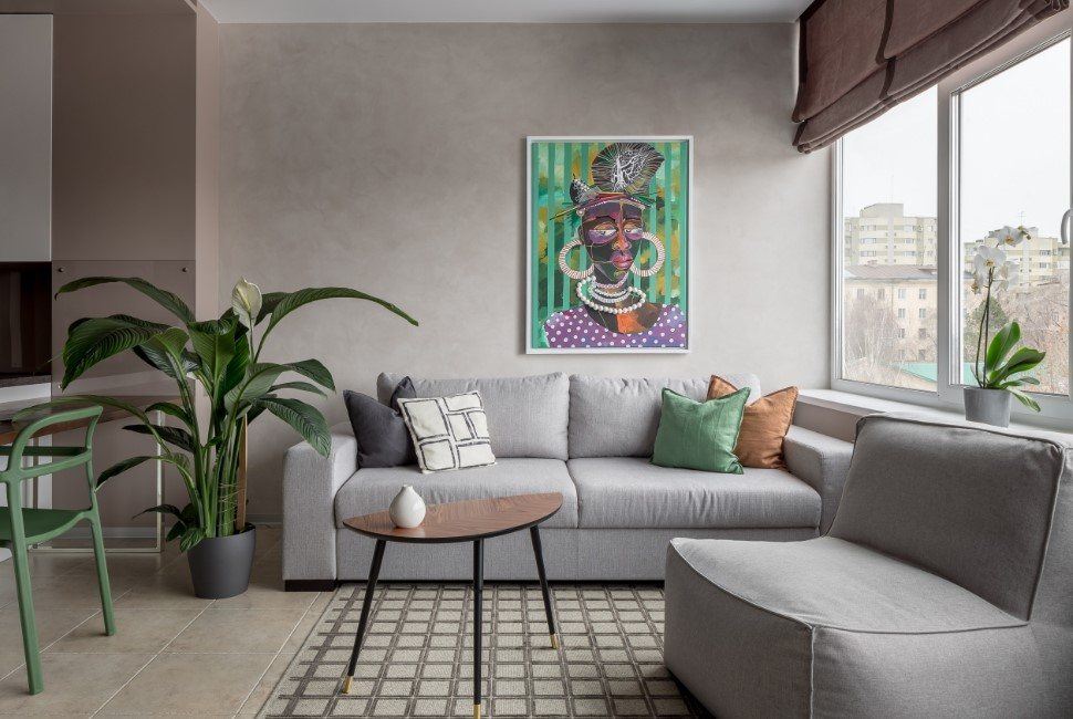 - В маленьких комнатах он уместен в деталях (пуф, картина, настольная лампа, акцент-стена), тогда помещение сохраняет свой размер и в то же время становится ярче;