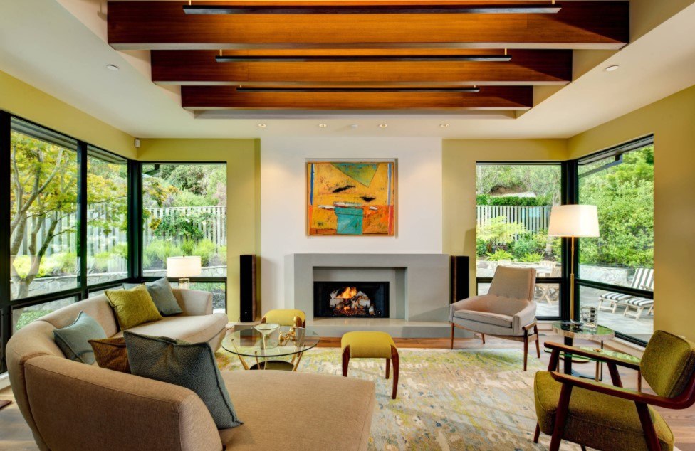Он используется в ночных шторах, принтах, постерах, картинах, декоративных подушках и футлярах на мебель. Иногда в одном из оттенков желтого – горчичном, соломенном может быть ковролин в гостиной, прикроватный коврик.