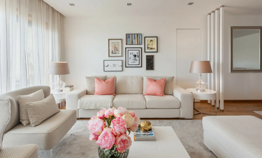 Украшения и аксессуары — завершающее достижение любого интерьера. Особенно в них нуждаются белые интерьеры, потому что они нарушают однообразие красок стен, мебели, а иногда и пола.