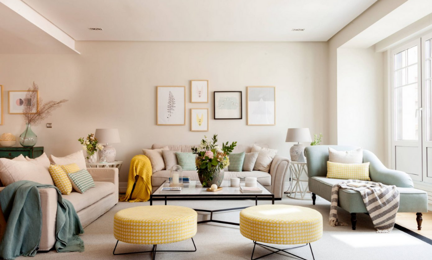 Спокойные, пастельные, воздушные оттенки светлой палитры как нельзя лучше подходят для гостиной.