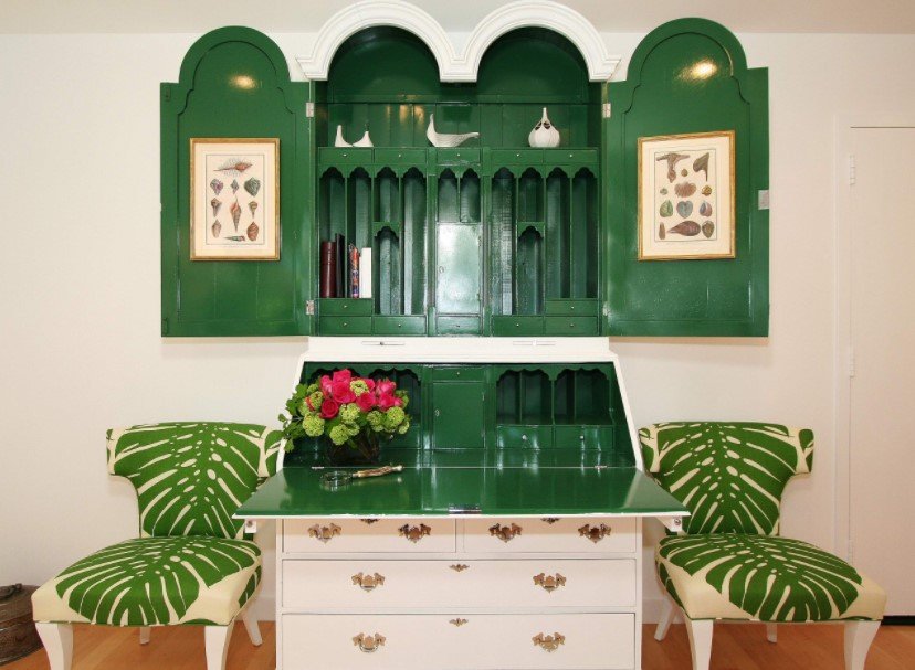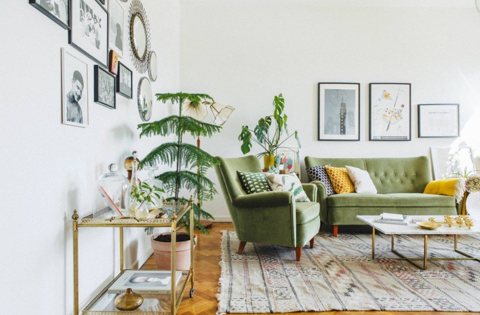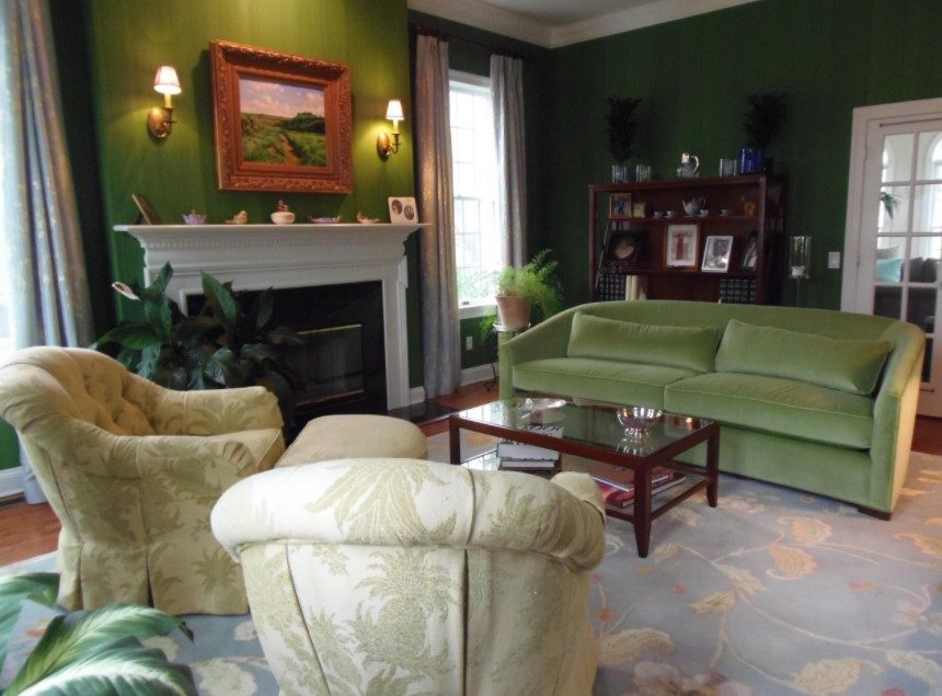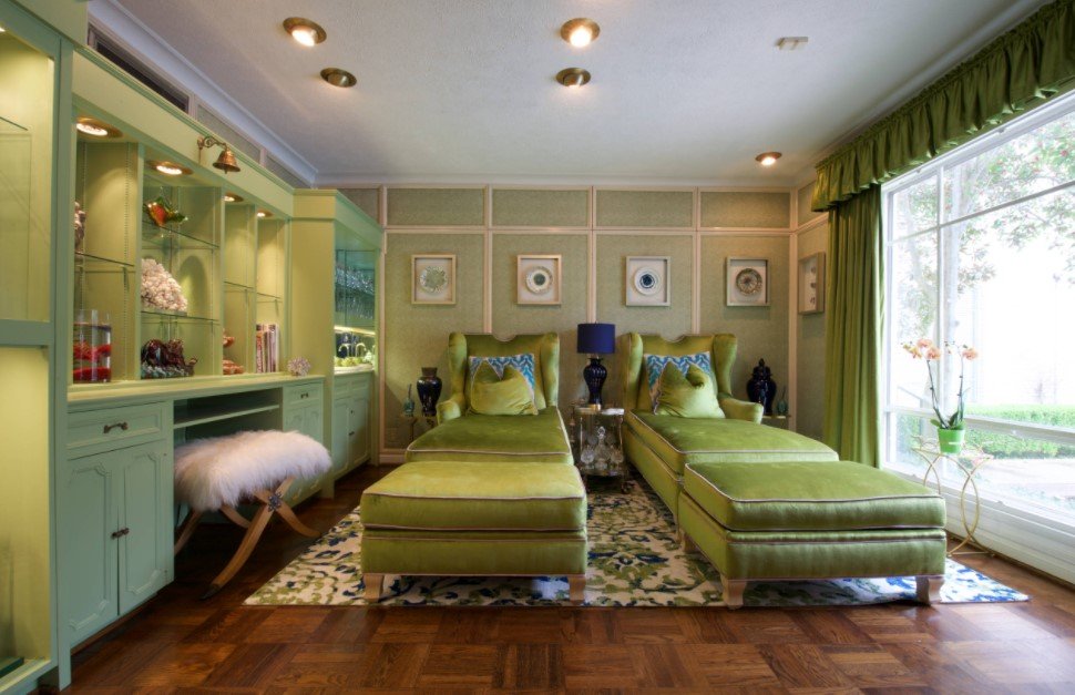 И самое главное, совсем не важно, каким именно образом будет реализован зелёный. Шторы, оттенок стен, шикарный ковёр, обивка кресел, зелёные подушки на диване, обрамление картин или расставленные горшки с цветами – это стильно, модно и безумно красиво!