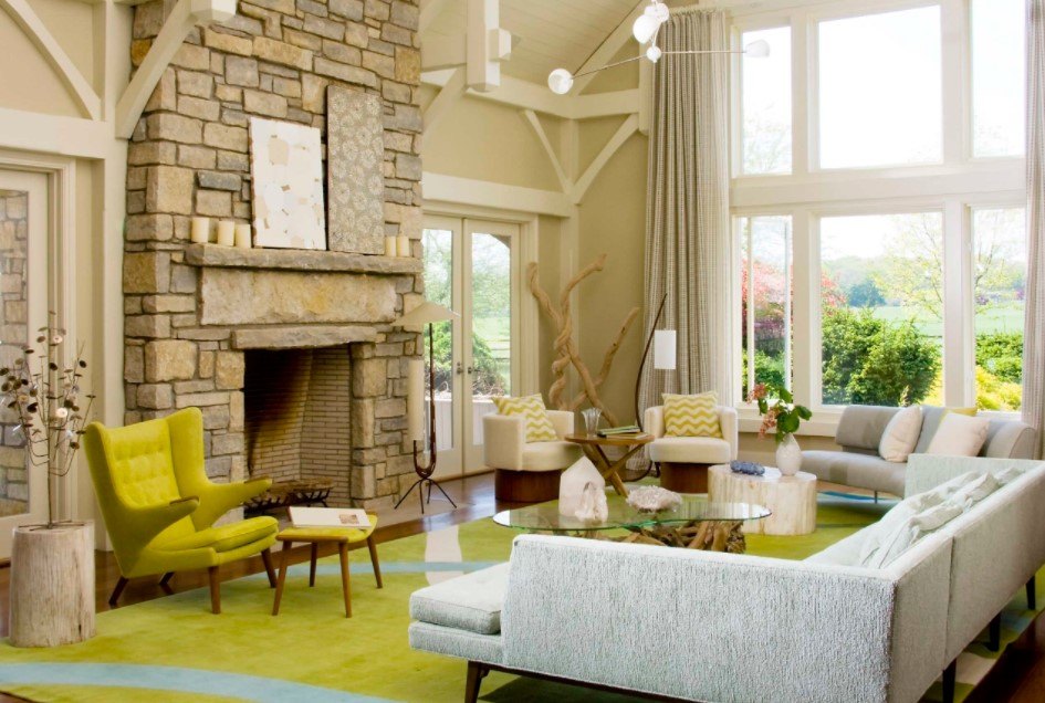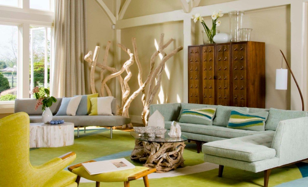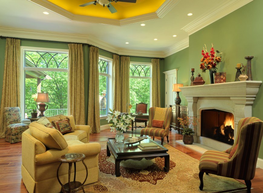 Жёлтый и зеленый стиль отлично смотрятся в одной комнате средиземноморского, этнического, африканского и стиля кантри. Такие направления принято считать природными. В результате обстановка в комнате приобретает естественные завершенные черты.