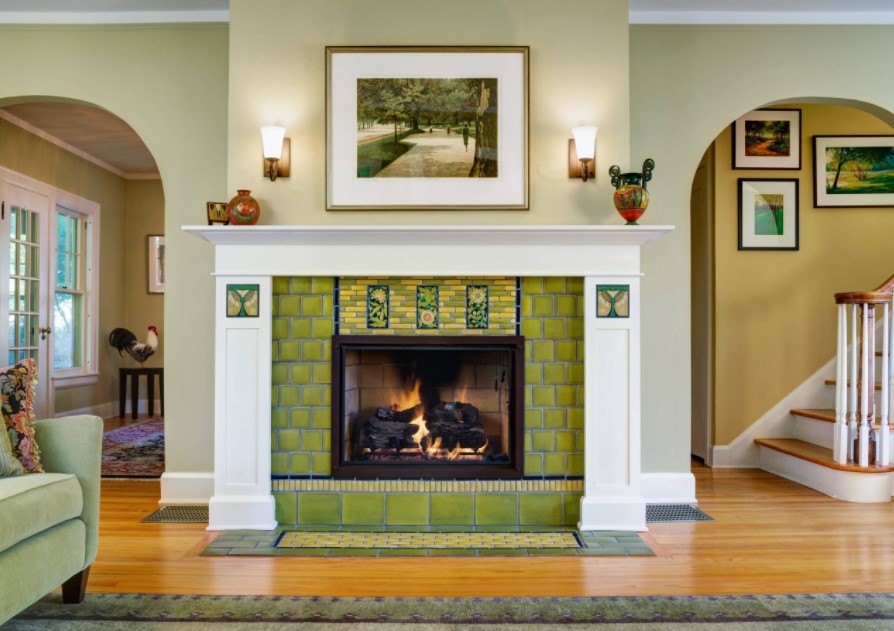 Хорошо вписывается в плохо освещенные комнаты: кабинеты, кухни без окон, туалеты, ванные комнаты. В таких помещениях стараются задействовать в одинаковом количестве тона желтого и зеленого. Наиболее востребованными остаются оттенки оливкового, салатового, травяного, салатного вместе с песочным, горчичным, янтарным, золотистым.