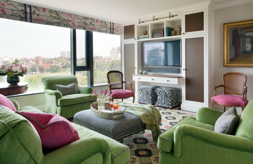 Для приглушения сочных тонов дизайнеры рекомендуют использовать зеленый.