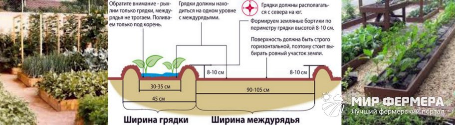 По традиции, правильным считается размещение в направлении «север-юг». Однако оно подходит только для высокорослых культур, а остальные рекомендуется сажать в грядки, расположенные по линии «запад-восток».