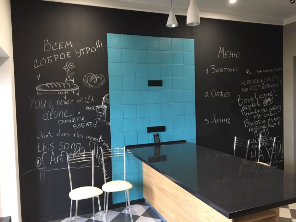 Все большую популярность приобретают грифельные покрытия в интерьерах городских квартир, ресторанов, кафе и офисов. Стены, покрытые грифельной краской, каждый день могут выглядеть по-новому, на них можно создавать яркие и необычные акценты в помещении.