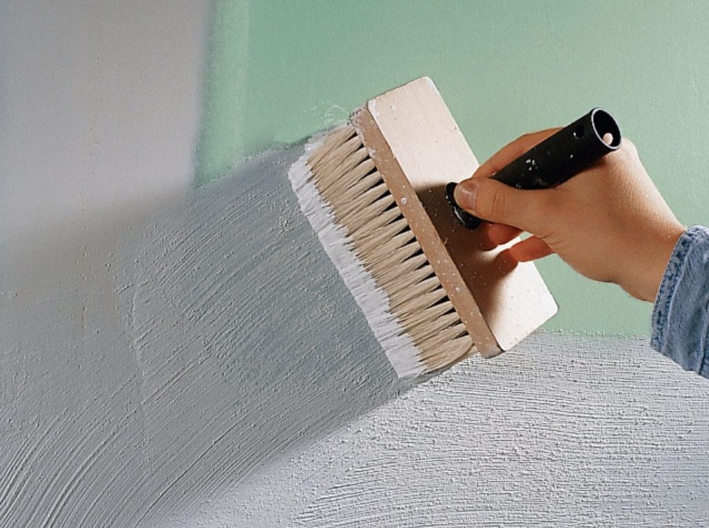 Менее распространённым вариантом является нанесение грунтовки с помощью кисточки. Строительную кисточку используют в случаях, когда валиком нанести грунтовочный слой неудобно или вообще не представляется возможных. Например, в узких и труднодоступных местах. Но большие пространства загрунтовать кисточкой уже проблематично, так как консистенция грунтовки плохо кладётся на кисть.