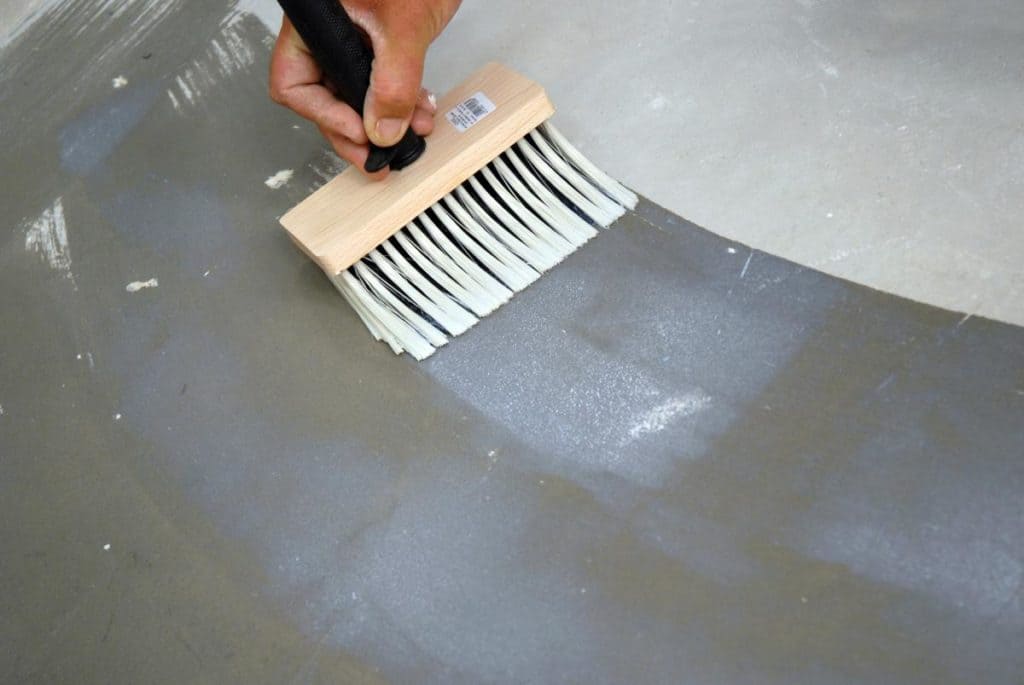 Порядок нанесения грунта. Вначале наносят “Аквастоп” – для закупорки пор. “Аквастоп” могут наносить в 2 слоя для лучшей пропитки. После “Аквастопа” наносят антигрибковые жидкости, которые также рекомендуют наносить в 2 слоя. А уже потом наносится грунтовка под плитку