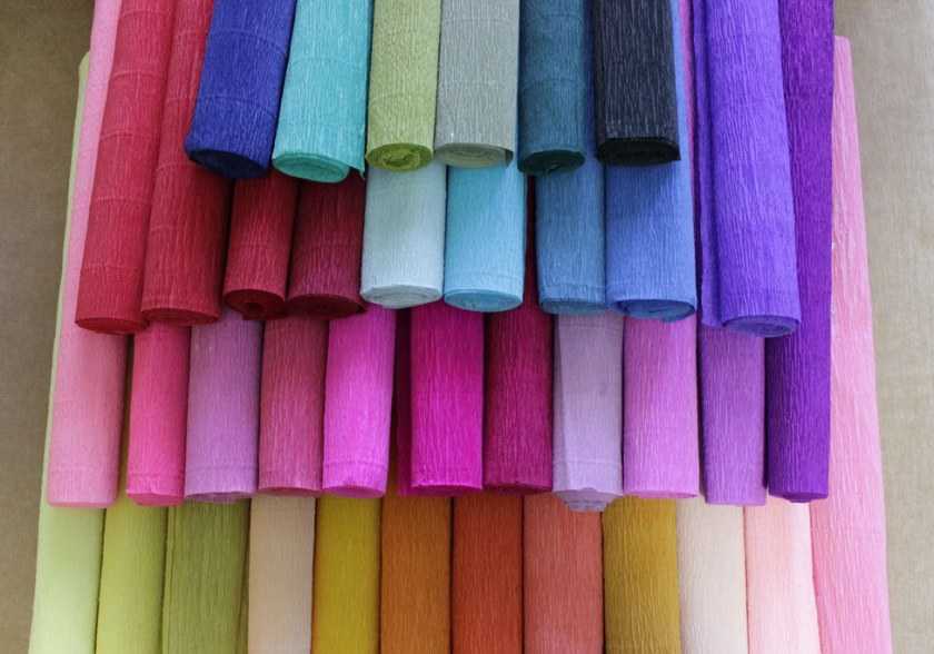 - Большой выбор и доступность расходных материалов. Например, стоимость за 1 упаковку цветного крепа не превышает разумных пределов, а офисный вариант и вовсе можно найти у себя дома.