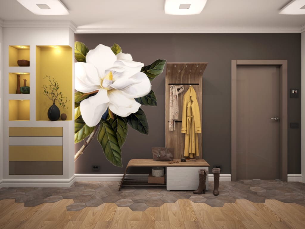 Обои — один из бюджетных вариантов отделки стен. Для прихожей актуальны обои, которые легки в уходе — стеклообои или виниловые под покраску. Флизелиновые обои можно подвергать влажной уборке (но не мыть!), а богатство расцветок и фактур дают простор для творчества.