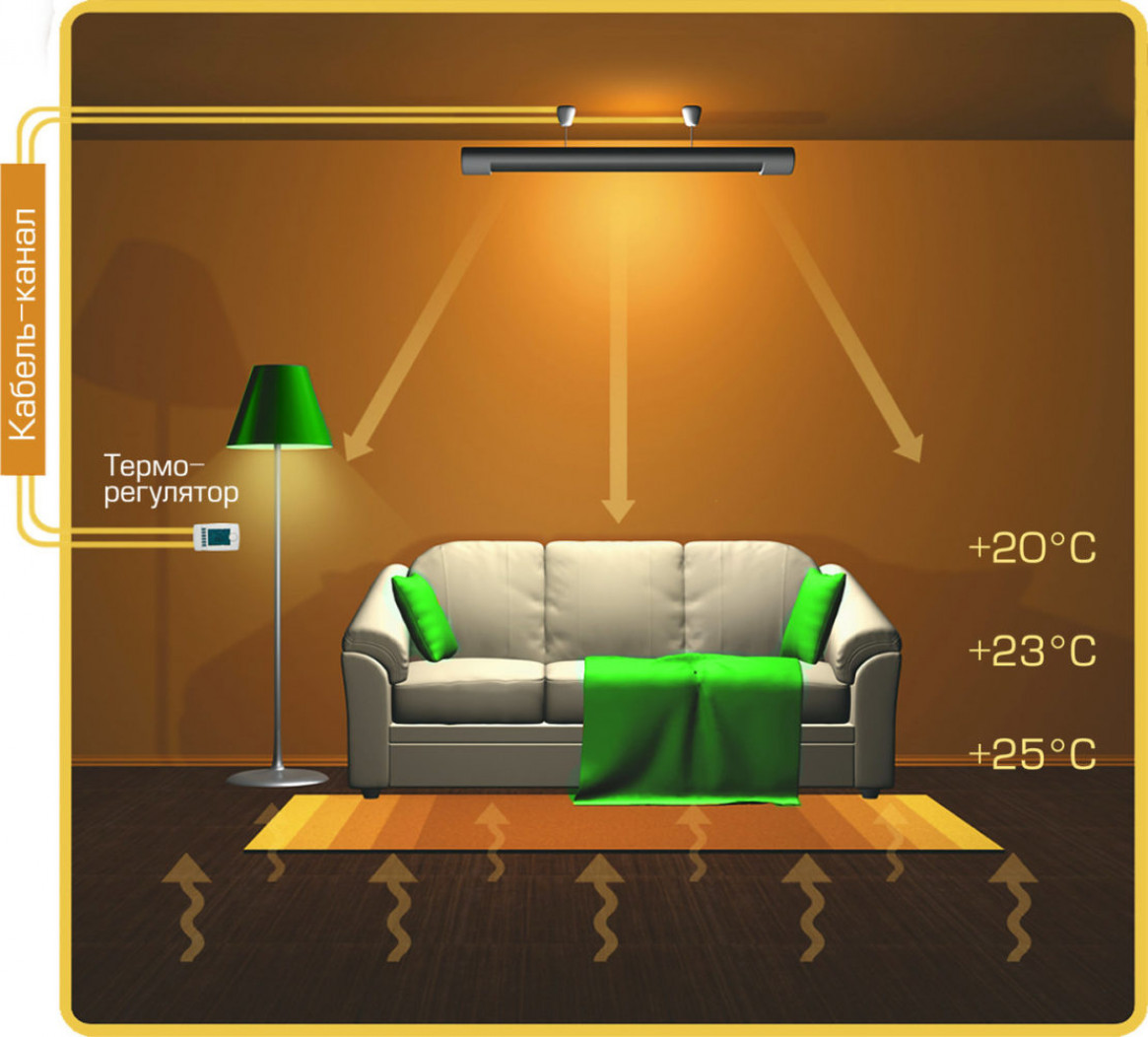 ИК-лучи – невидимые для человеческого глаза волны длиной от 0,74 мкм до 2 мм. Тепловая энергия, поглощаемая предметами в комнате, в которой установлены ПЛЭН, становится источником инфракрасного излучения.