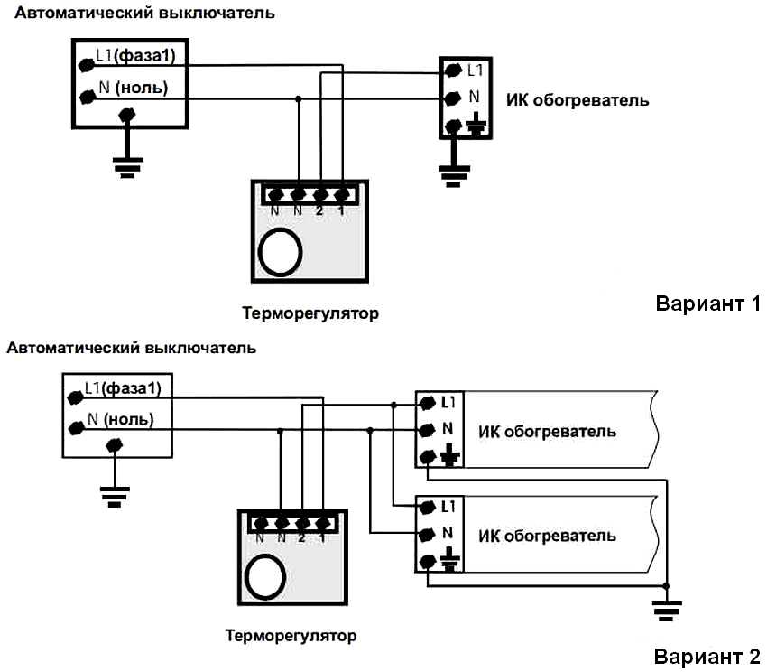 Варианты подключения инфракрасных обогревателей через термостат