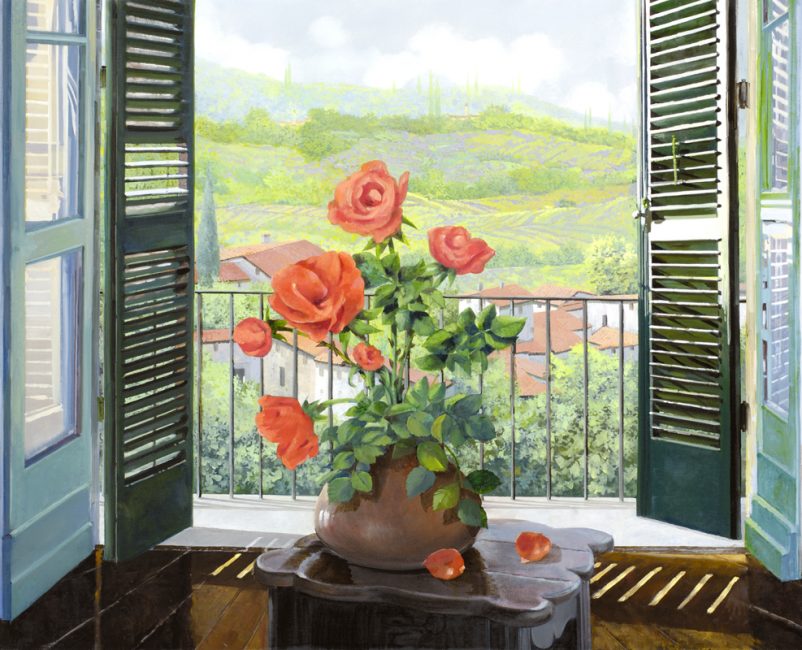 Для прихожих, а это обычно темные небольшие помещения, подходят светлые фрески. Длинный узкий коридор можно украсить колоннадой с видом на море. Также подойдет изображение окна или балкона с открывающимся из них видом.