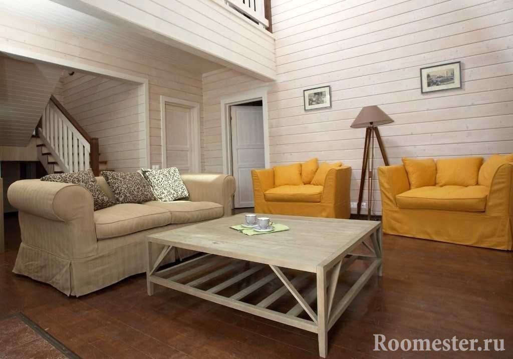 Гостиная в деревянном доме Источник hi.decoratex.biz